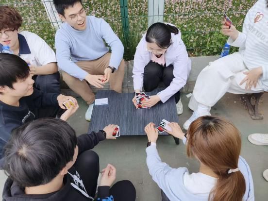 体力较量之后,同学们转战桌游阵地,《阿瓦隆》《UNO》等经典游戏轮番上演。清脆的“UNO”声与《阿瓦隆》中多人同时“跳身份”的推理名场面交织,智力博弈与欢声笑语相映成趣。宣传委员朱永山在整理活动照片时感慨道:“镜头里捕捉到的每一张笑脸都格外珍贵,大家在放松玩闹中,心贴得更近了,班级凝聚力又上了一个大台阶。”