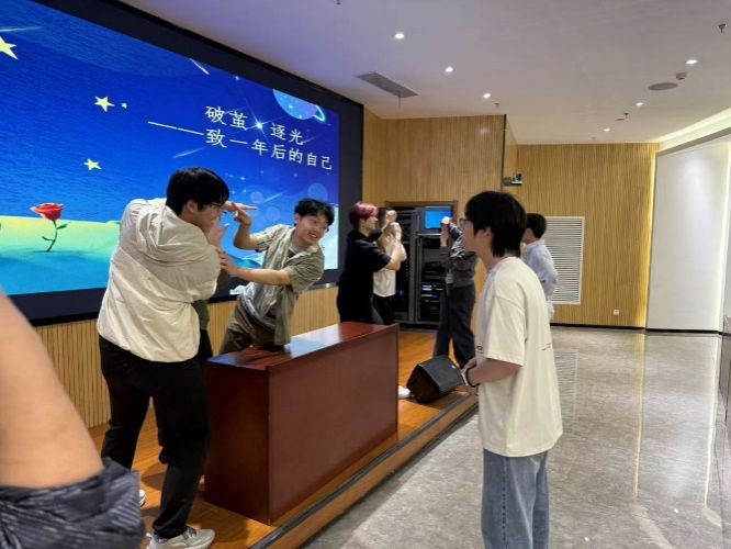 竞技结束后,班委代表为获胜团队及个人颁发了电动牙刷、陶瓷马克杯、U型枕、零食礼包等实用奖品,现场洋溢着收获的喜悦与真挚的祝福。活动尾声,全体同学一同观看了《留给一年后的自己》温情短片,在静谧的观影氛围中回望来路、展望前程,为本次团建赋予了深刻而绵长的纪念意义。