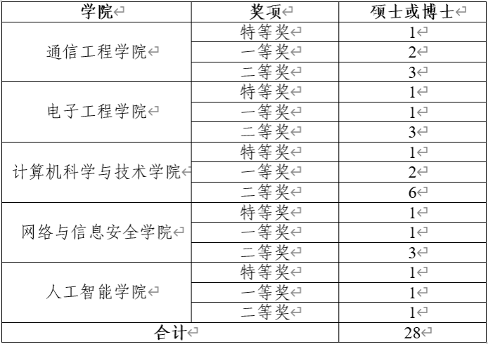 通信工程学院 | 1 | 最终评选出3名获奖研究生 |